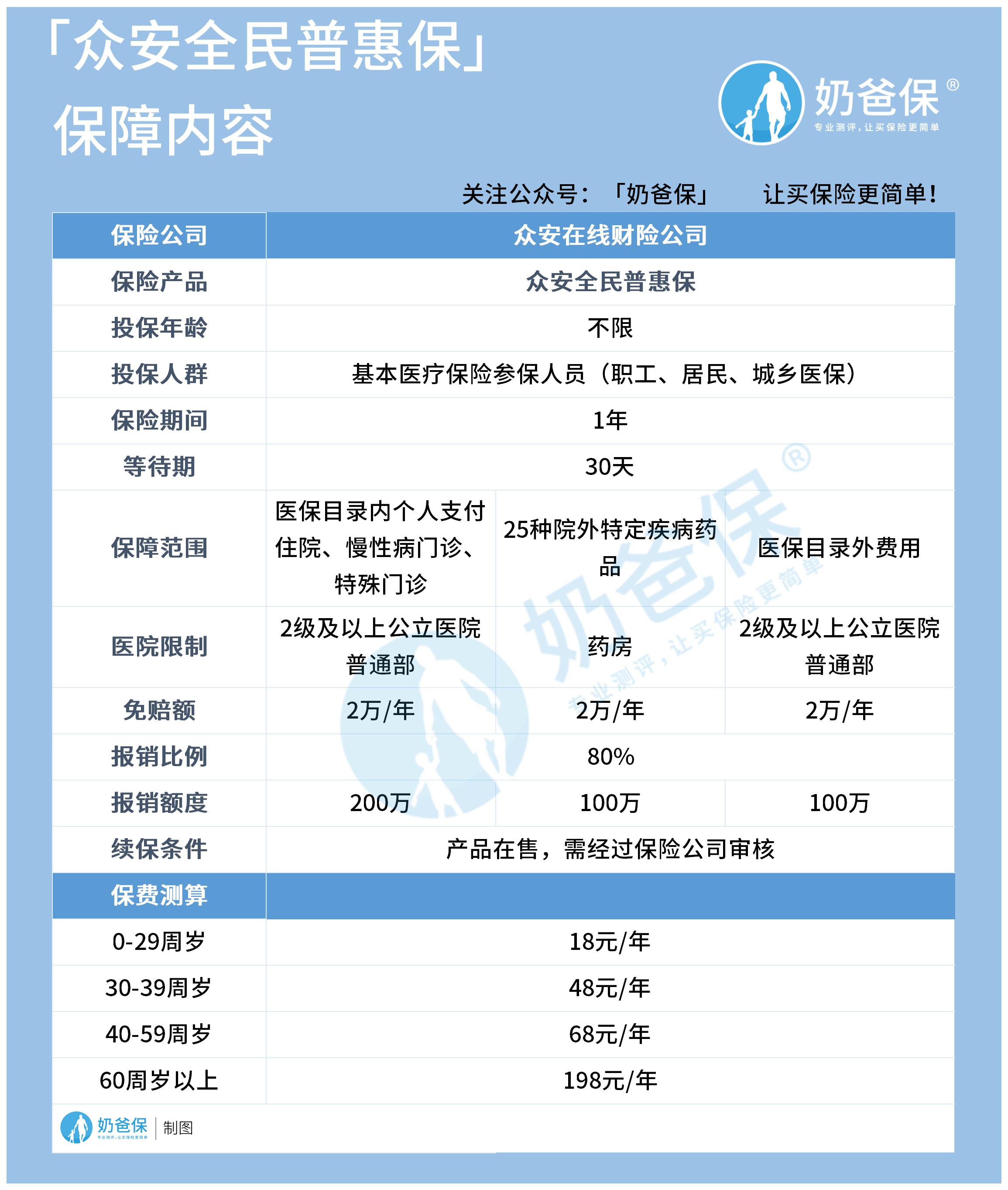 三、众安全民普惠保一年多少钱