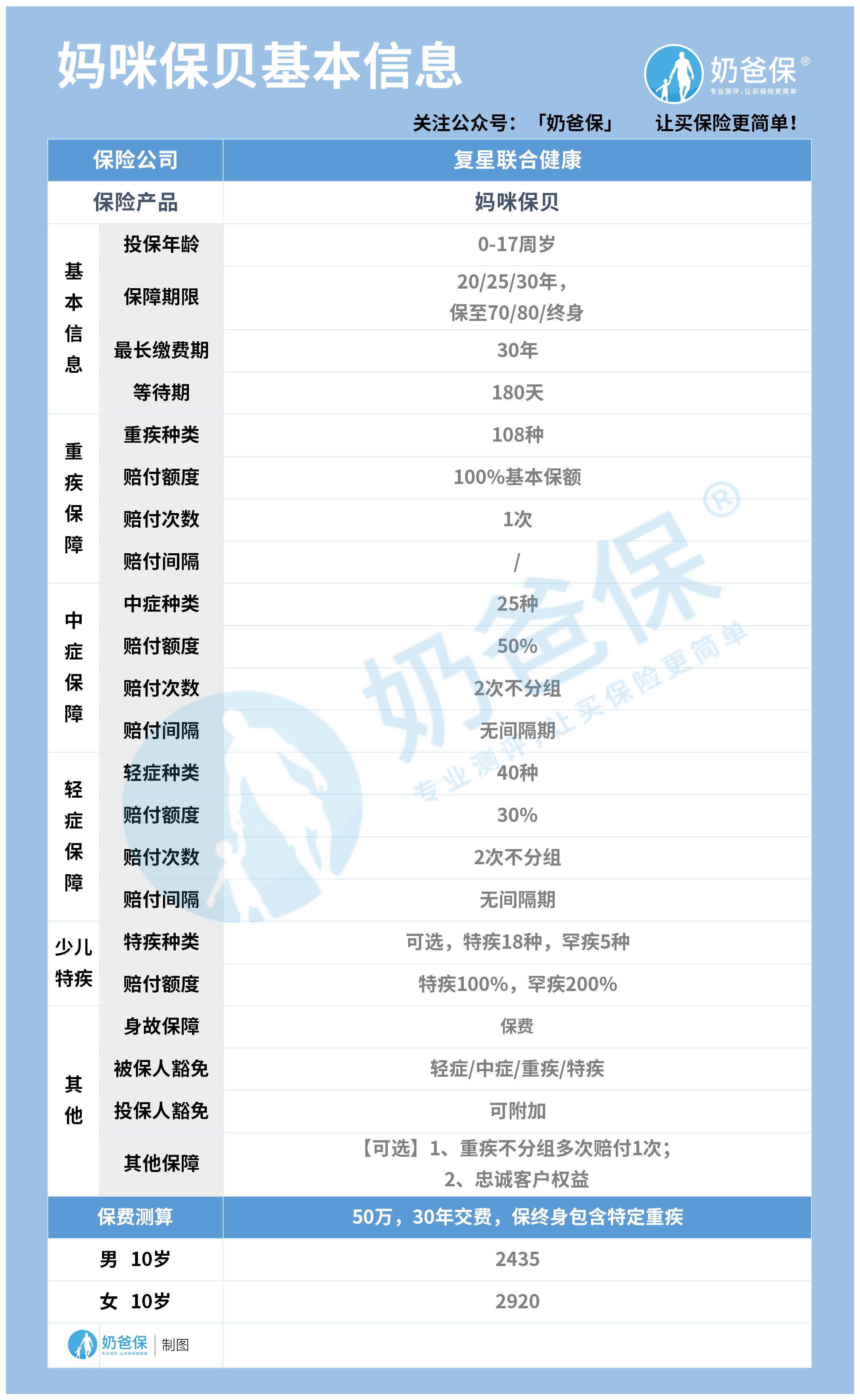 按照惯例,奶爸将妈咪保贝的基本内容放在表格中,接下来我们看看它保什么: