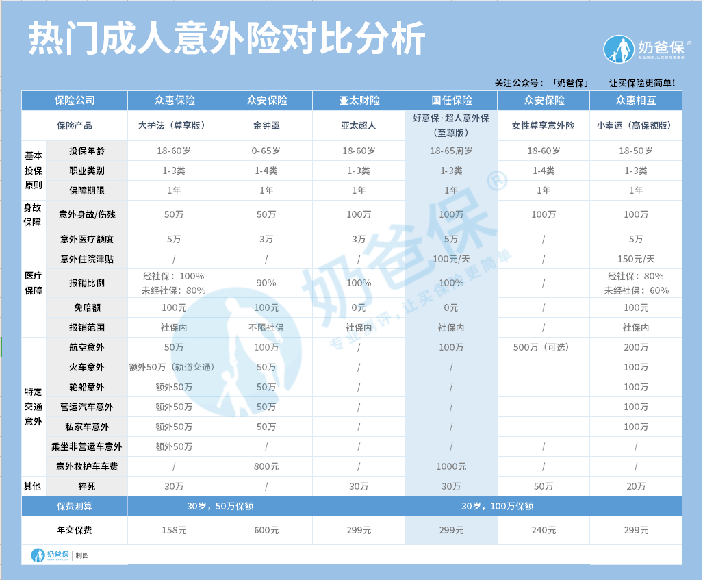 为了给大家一个客观答案,我们还是按照老规矩,将好意保超人意外保跟市面上同类产品做对比。