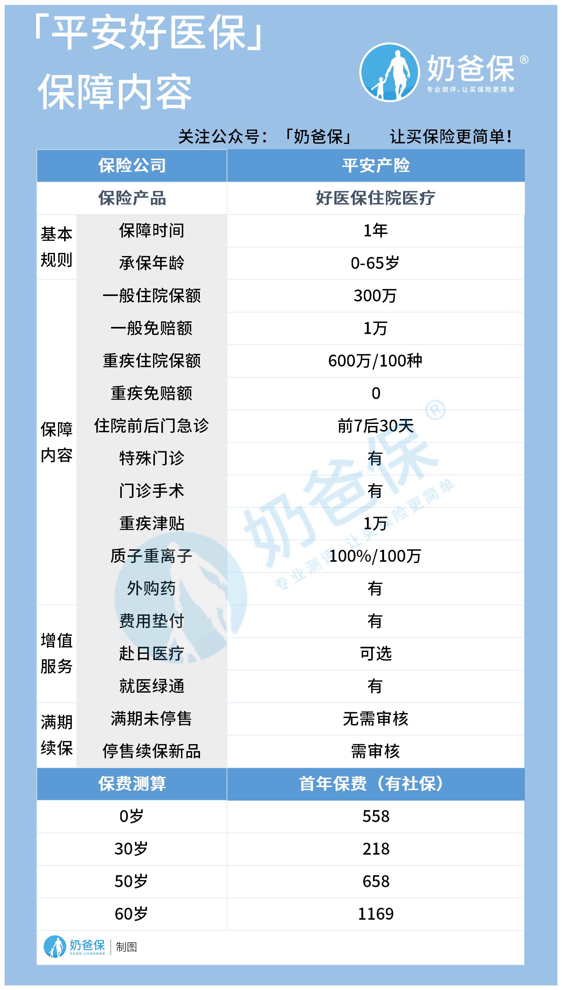 为了让大家更好的认识平安好医保,奶爸已经将它的基本信息整理在了一张表格中。