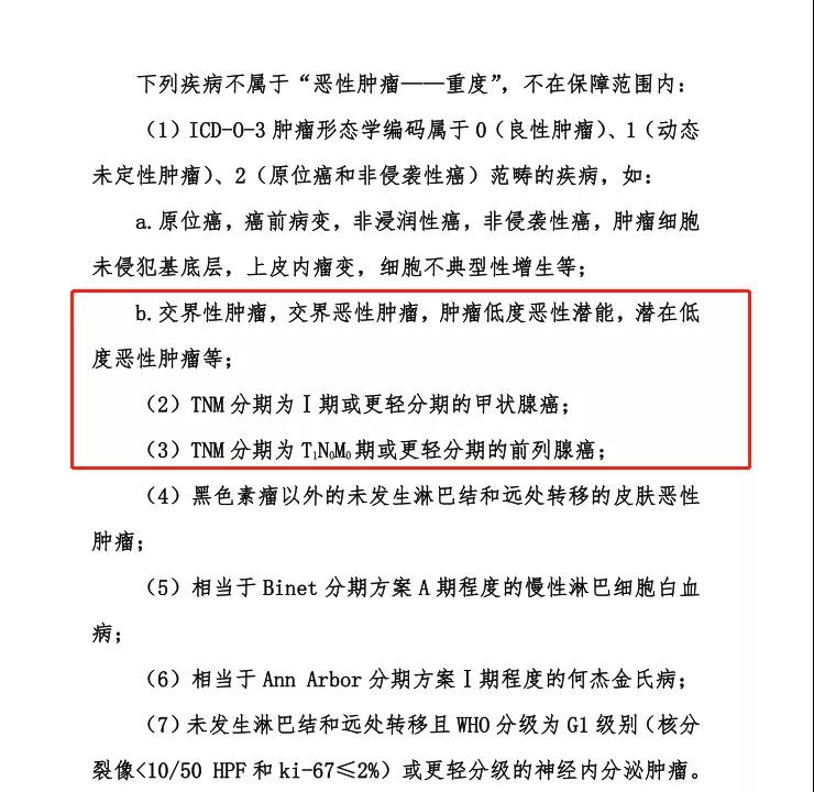 新定义中明确指出,TNM分期为Ⅰ期或更轻分期的甲状腺癌从原来的重疾中剔除,列入到轻症理赔。