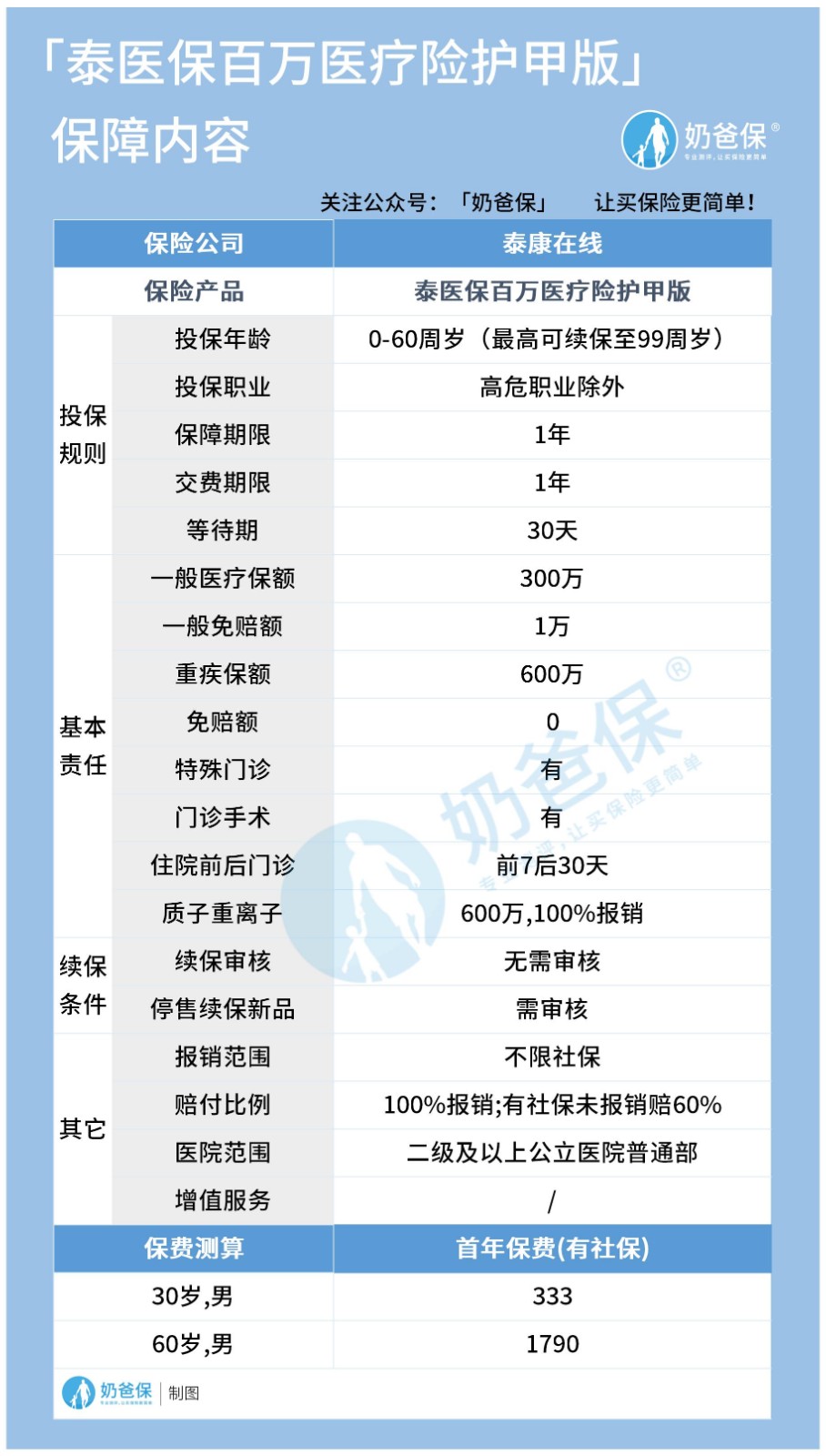 为了让大家更深入了解泰医保百万医疗险护甲版,奶爸将从三个方面对这款产品展开分析: