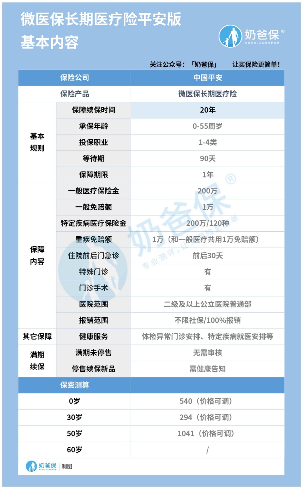 那么微医保长期医疗险平安版都有什么保障内容?保证20年续保真的好吗?看看奶爸以下的分析吧。