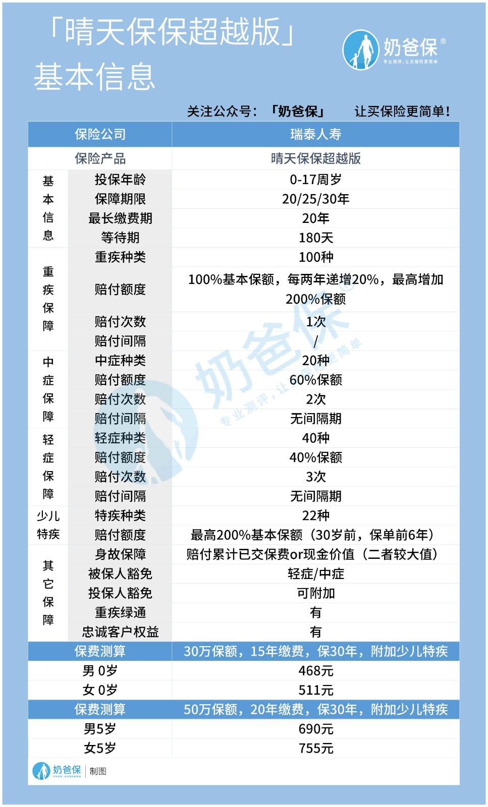总的来说,晴天保保超越版是晴天保保重疾险的升级产品,针对少儿提供的疾病保障力度更大,保障也更加全面,能给少儿贴心全面的疾病呵护,还是挺不错的。
