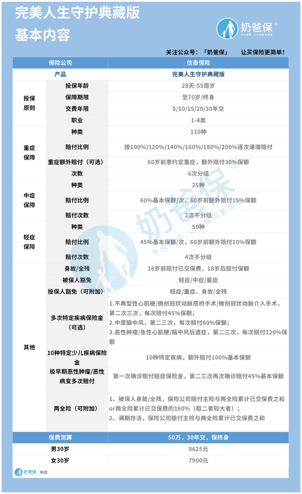 以上就是完美人生守护典藏版的优缺点分析,想要了解详细的内容分析可以看看奶爸的这篇文章:《信泰完美人生守护典藏版保障靠谱吗?》