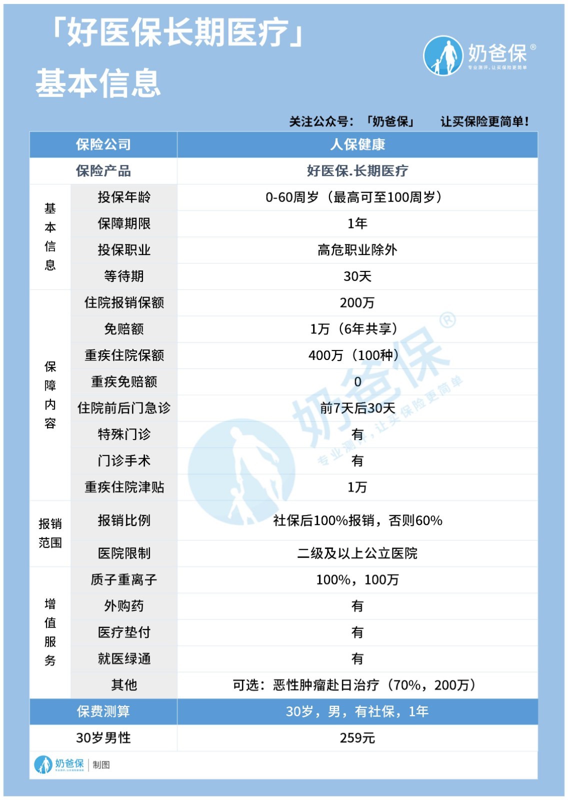 奶爸以30岁已缴纳社保的男性为例进行测算,缴纳一年好医保长期医疗险所需的保费是259元,相对来说是比较便宜的。