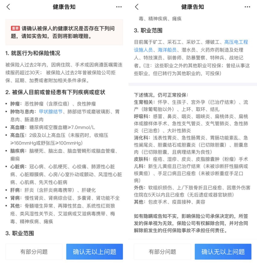 同样的,它也有一些坑需要我们注意,比如质子重离子等待期长,设置有一万免赔额以及健康告知越来越严格等等。