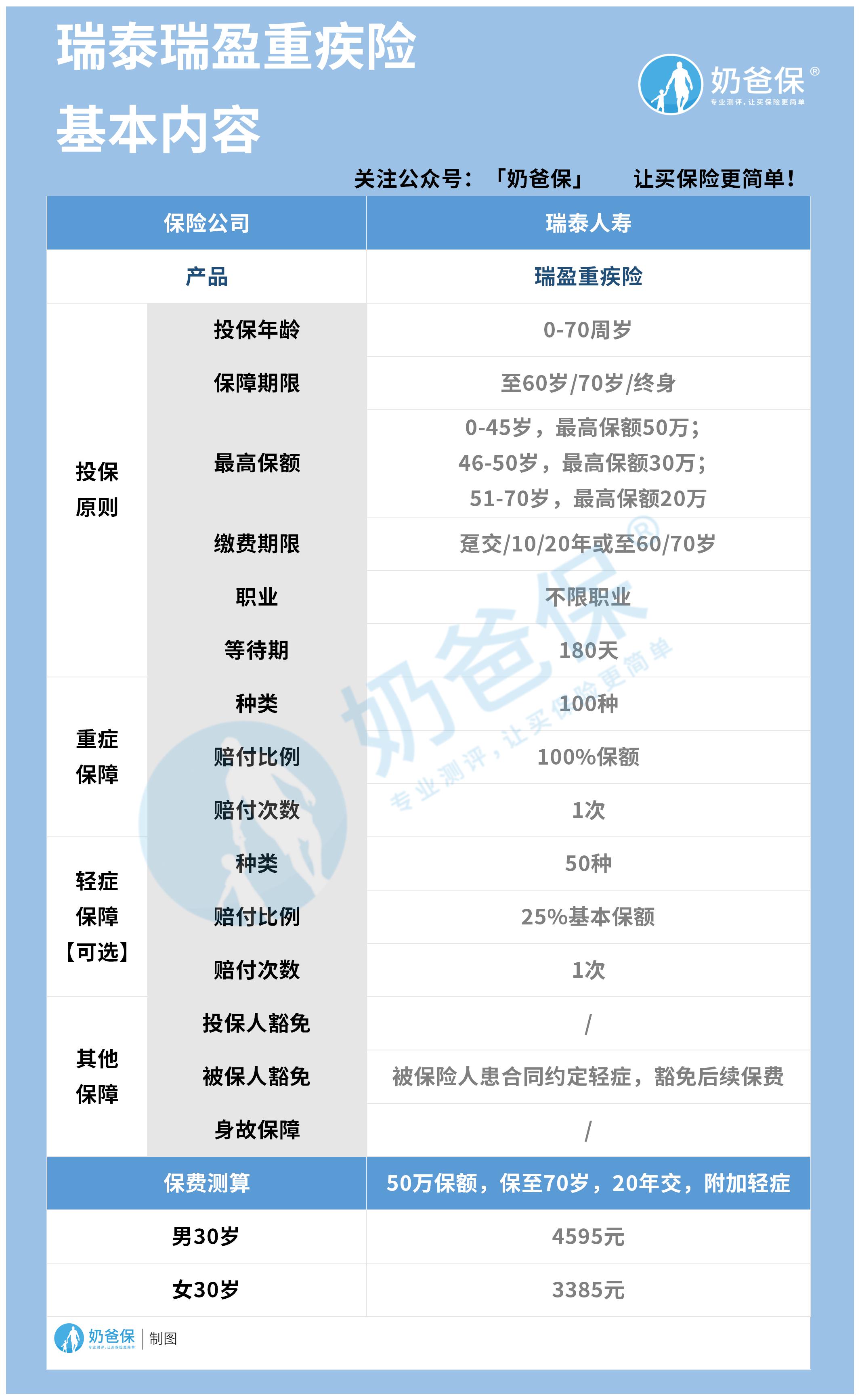 为了方便大家对瑞泰瑞盈重大疾病保险有更好的了解,奶爸已经将Ta的基本内容整理在一张表格中,具体如下表: