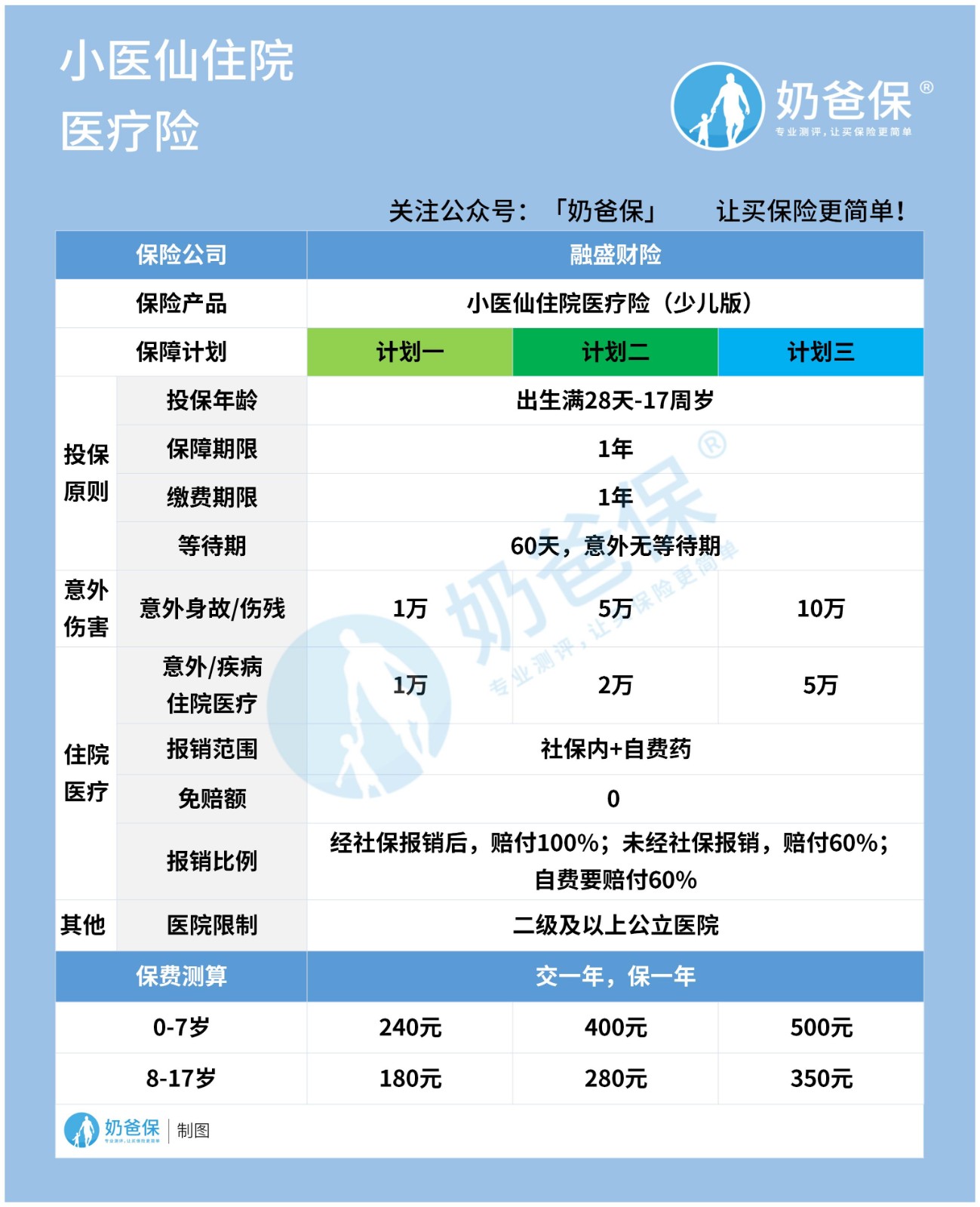 为了让大家直观了解小医仙住院医疗险少儿版的保障内容,奶爸特意做了一张基本信息表,我们一起来看。