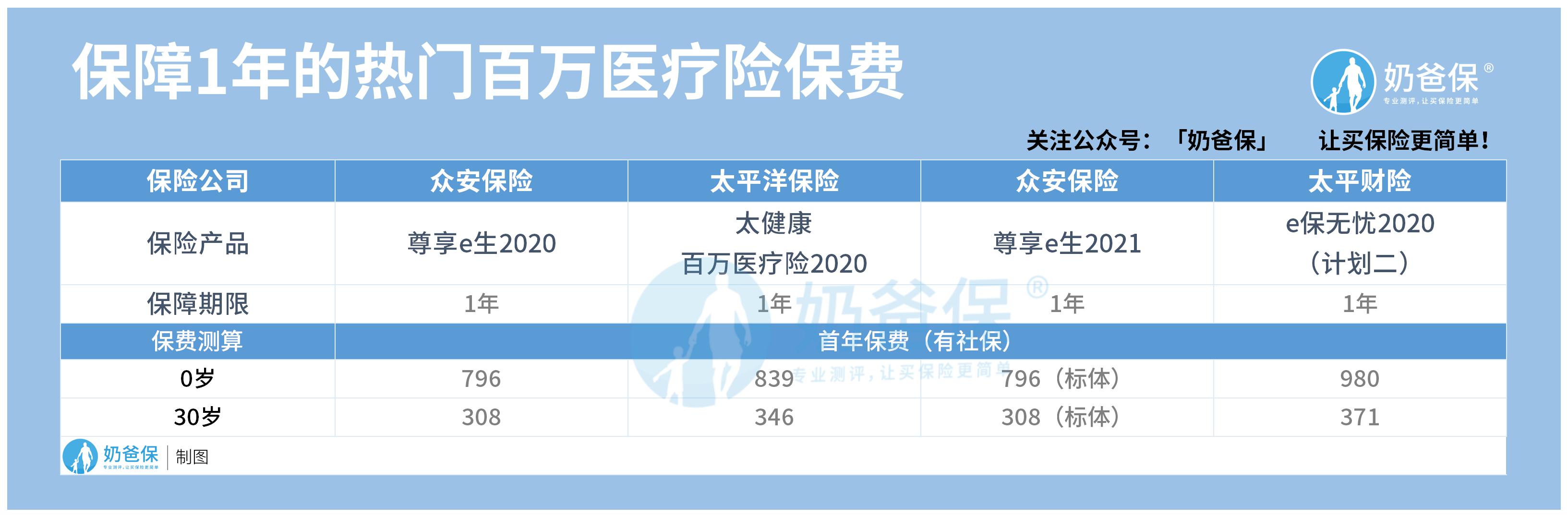 众安尊享e生2021的保费在市面上有没有优势呢?奶爸拿它和其他产品相比看下谁的保费便宜,以下是保费对比表格:
