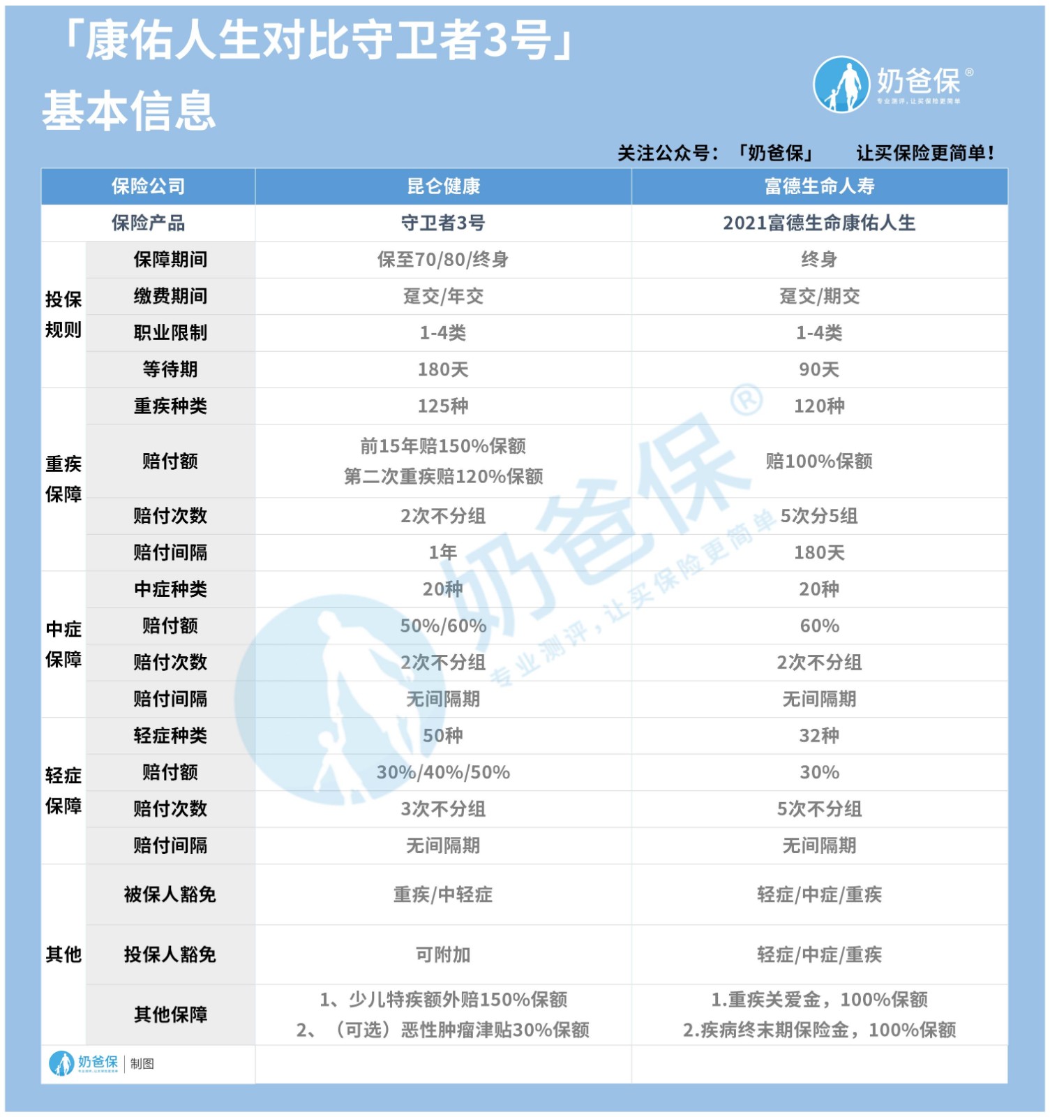 了解完富德生命康佑人生的内容,接下来奶爸拿旧定义产品昆仑守卫者3号作对比,看看结果如何。