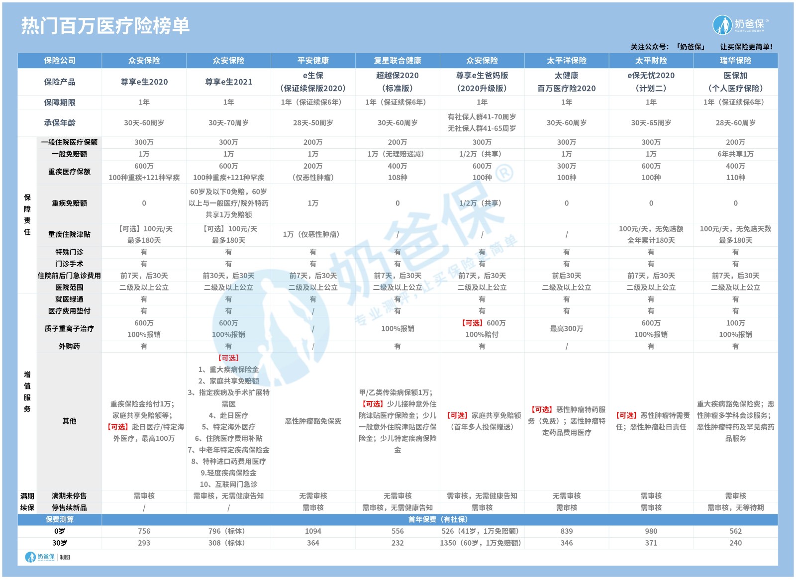 以上就是尊享e生2021版的优缺点分析,除了这款产品,市面上还有其他比较优秀的百万医疗险,下面是几款优秀的百万医疗险表格: