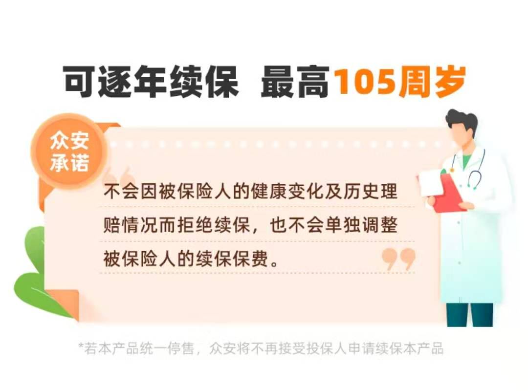而且这款产品可以逐年续保,最高可以续保至105岁。