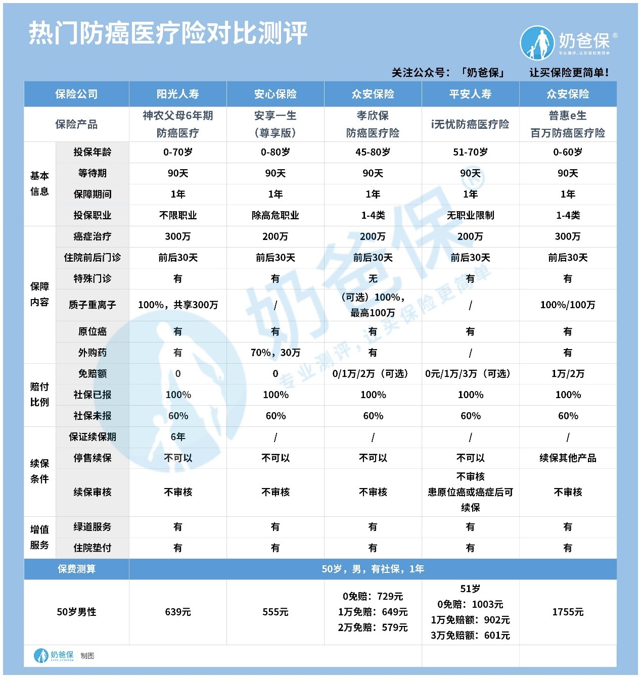 可能有些人还不知道市面上有哪些防癌医疗险比较热门,奶爸整理了几款比较热门的产品供大家挑选: