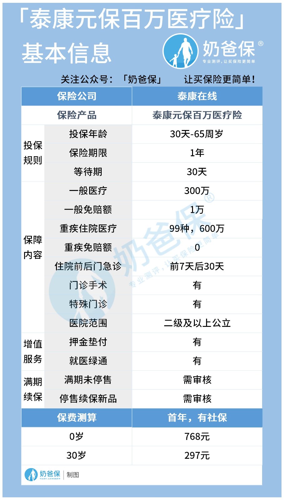 泰康元保百万医疗险包括一般医疗保障和重疾住院医疗保障,而且还有押金垫付和就医绿通服务。