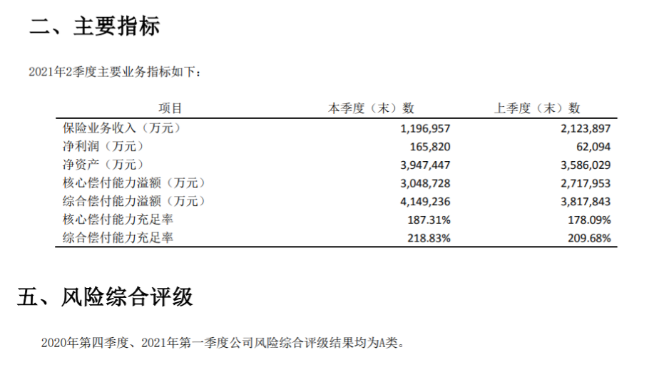 注:上图是2021年第二季度阳光人寿信息披露报表(部分截图)。