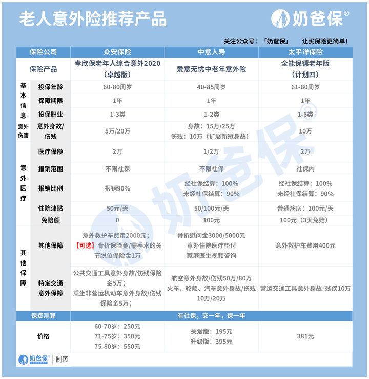 以上便是奶爸为老年人推荐的几款意外险了。