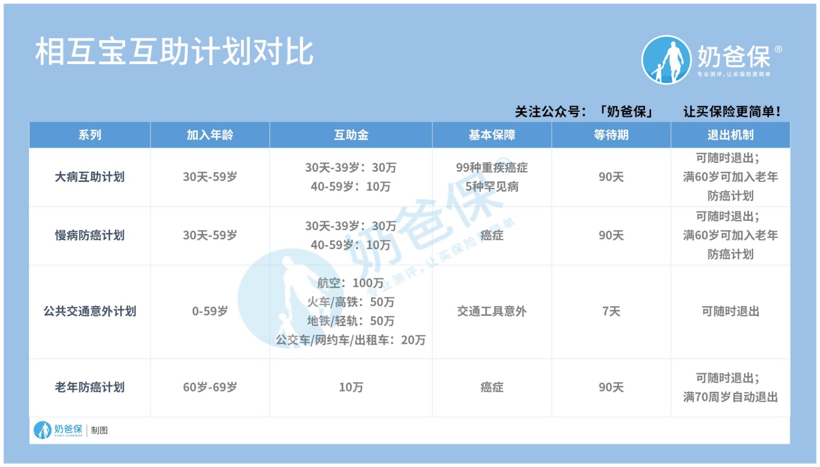 奶爸做了一份相互宝互助计划的对比图,方便大家分析: